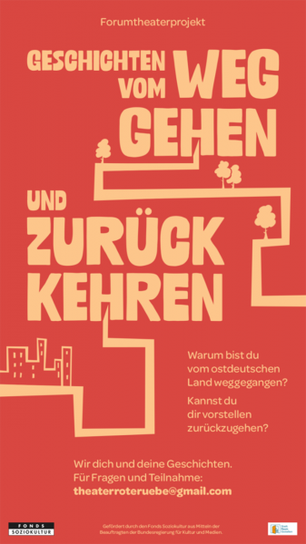 Das Projekt trägt die Probleme und Konflikte derer, die gegangen sind, auf die Bühne – und kehrt mit einen interaktiven Forumtheaterstück aufs Land zurück. Über Theater entsteht ein Begegnungsraum. Dialoge werden möglich mit denjenigen, die geblieben sind: wir reden über die Landflucht, Zukunftswünsche und Handlungspotentiale.