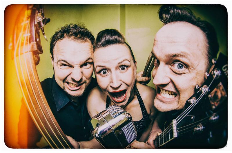 So finden sich auch Songs von Roxette, Bruno Mars oder Kim Wilde im Rockabilly-Kleid wieder und mischen ordentlich mit. Big Fat Shakin’ setzt alles daran, ihr Publikum sofort mitzuziehen und zu akrobatischen Höchstleistungen zu verführen. Das Trio fährt stilecht mit mehrstimmigen Gesängen auf, wobei auch jeder der 3 mal als Hauptsänger agiert. Und das sieht nicht nur gut aus, wenn die Kontrabass spielende Frau (Miss Magenta McKinley) in der Band den Bruno Mars singt.